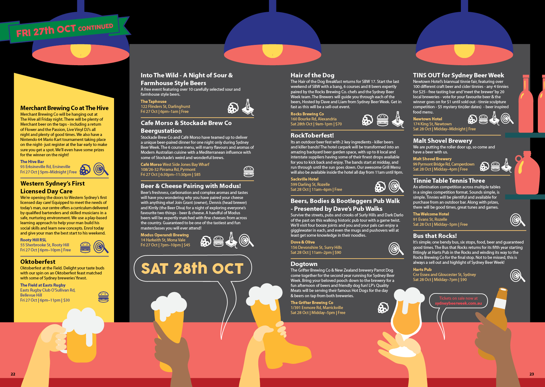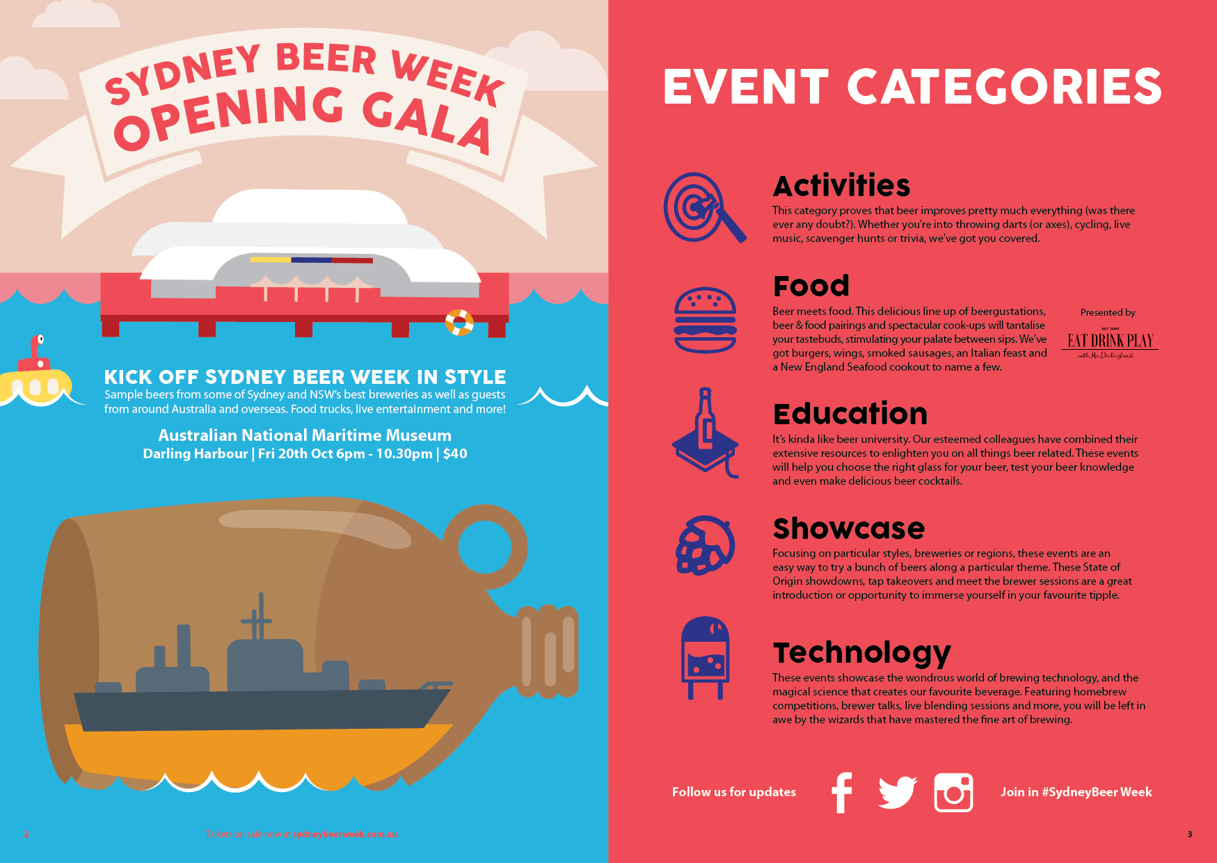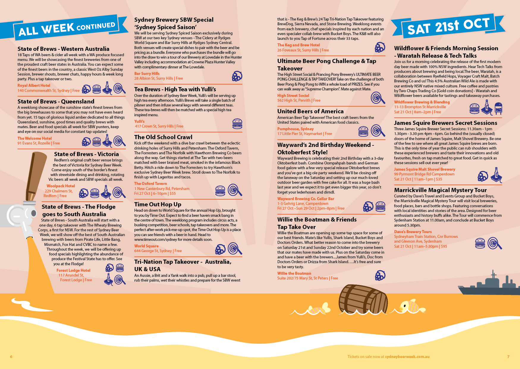 A festival for everyone who drinks beer.. That was the message for the new look for 'Sydney Beer Week' program design had to deliver. Previously 'Sydney Craft Beer Week', my design studio was approached to come up with a design that was less organic and more accessible to a greater audience. After presenting mood boards to confirm the direction for design, I went to work laying out events and illustrating backgrounds. Look out for the spread that depicts a deconstructed beer, and another that exhibits beer googles.