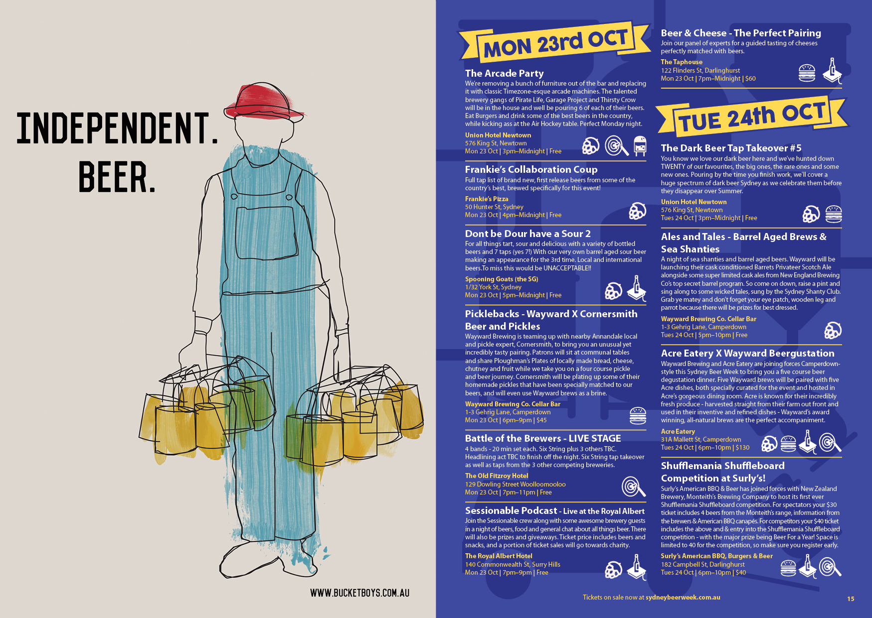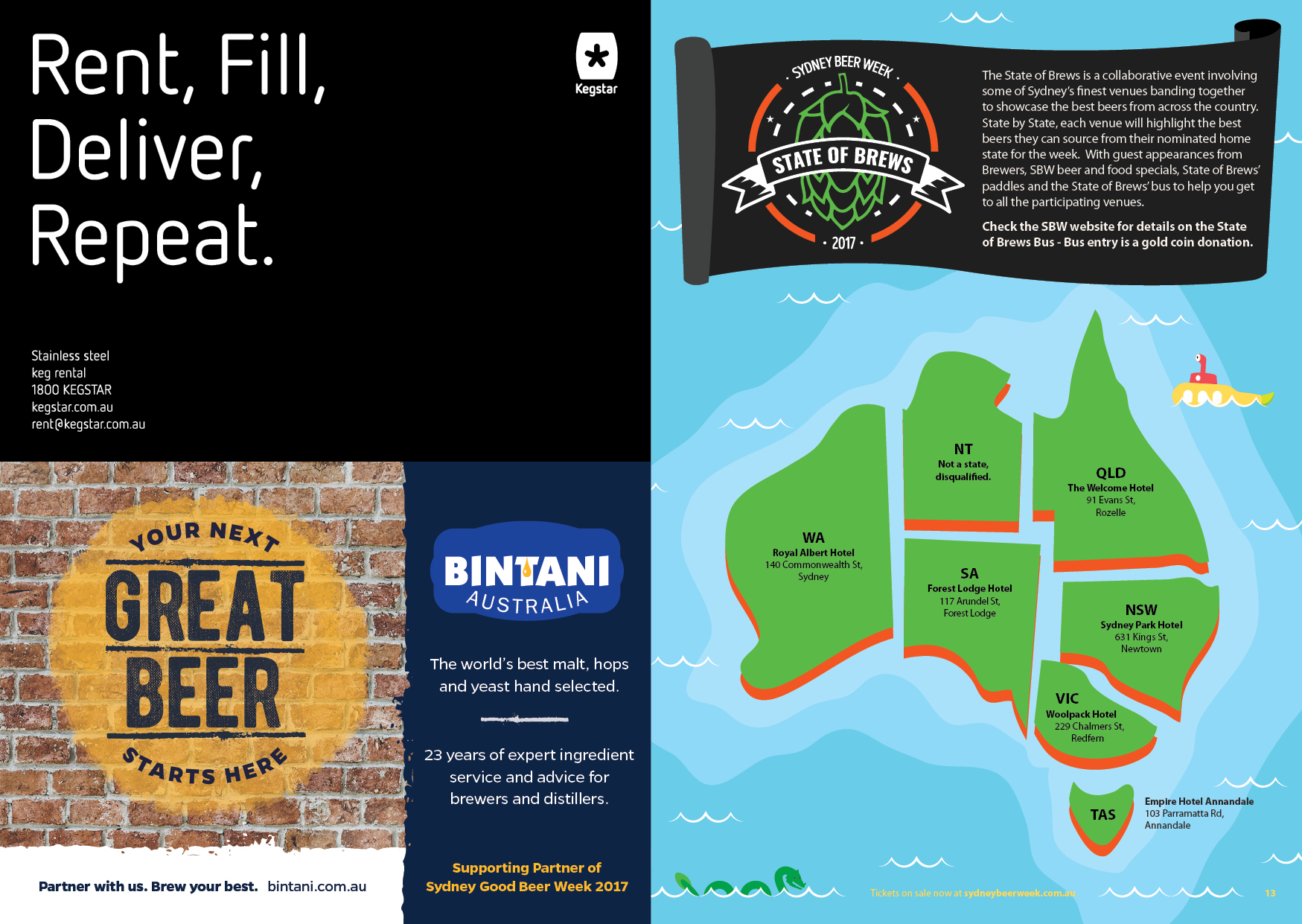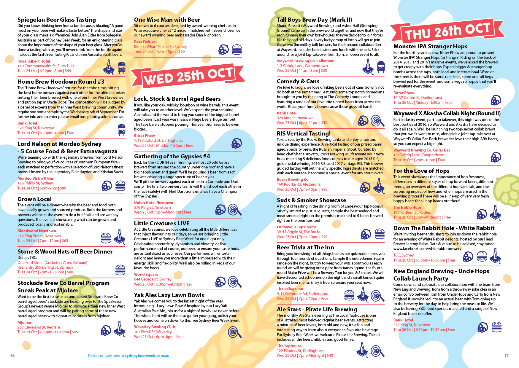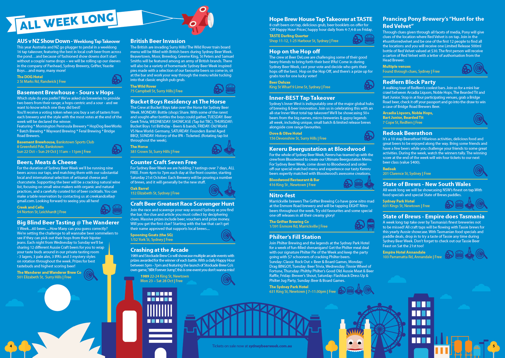 A festival for everyone who drinks beer.. That was the message for the new look for 'Sydney Beer Week' program design had to deliver. Previously 'Sydney Craft Beer Week', my design studio was approached to come up with a design that was less organic and more accessible to a greater audience. After presenting mood boards to confirm the direction for design, I went to work laying out events and illustrating backgrounds. Look out for the spread that depicts a deconstructed beer, and another that exhibits beer googles.